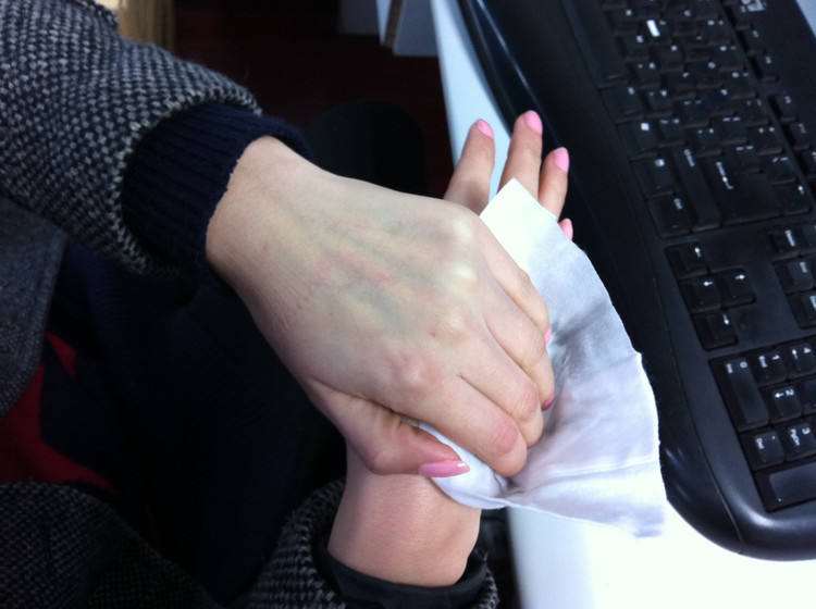 先将我们的手手擦干净……