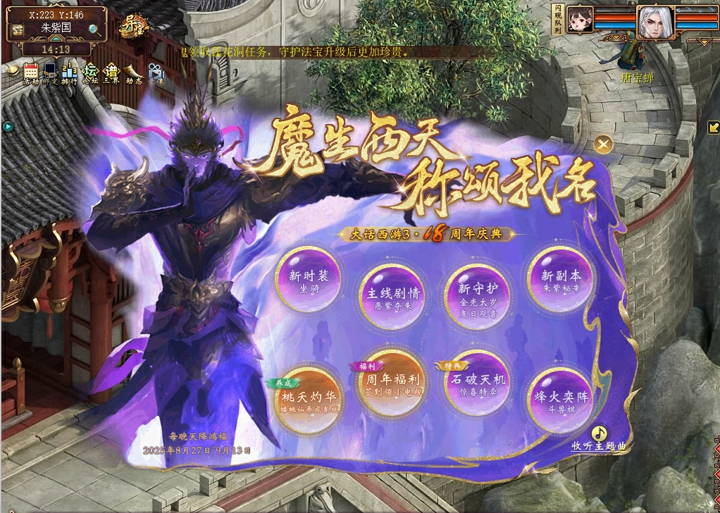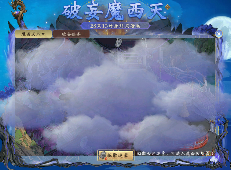 ①完成七个破妄任务,成功驱散地图上七片迷雾的玩家,可通过朱紫国(16,51)空间裂隙,率先进入魔西天场景,参与新门派玩法。