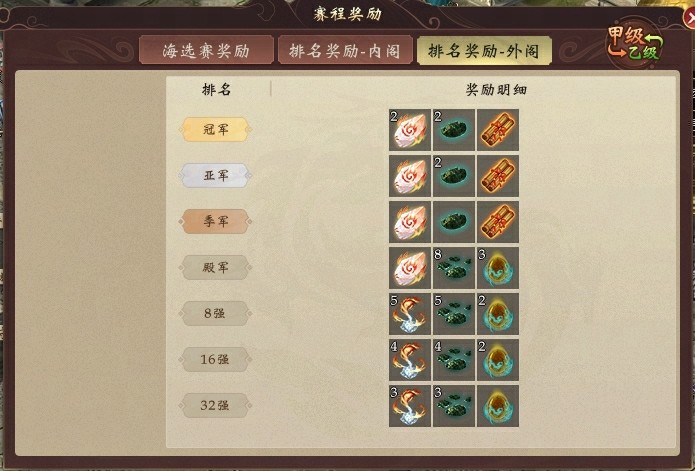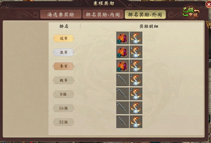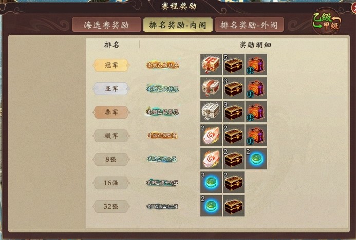 ④ 海选赛前32名队伍晋级内阁赛区,后32名队伍晋级外阁赛区;