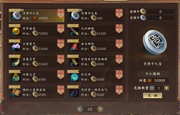 ④竞猜获胜后,玩家将获得英雄币,英雄币可用于竞猜商城内物品兑换。